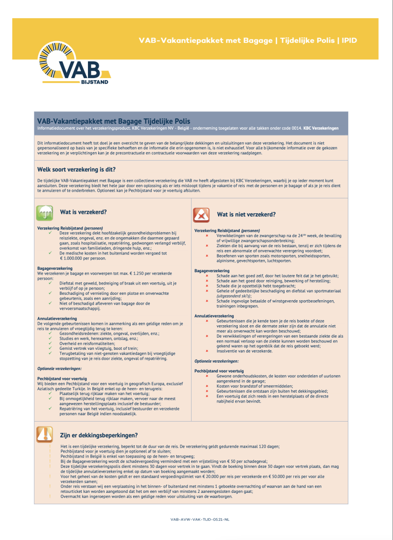 Dekking van de reisverzekering VAB